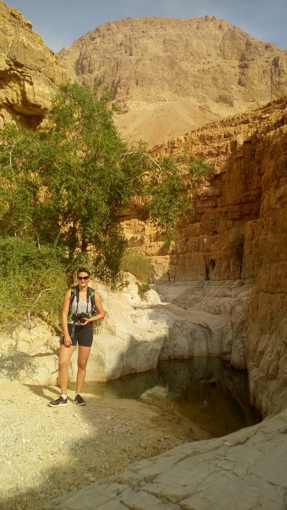 Schon aus einiger Entfernung ließ sich erahnen, wo die Quelle zu finden sein könnte, denn ein Stück bergauf sahen und hörten wir auf einmal zahlreiche Menschen. Als wir den sonnigen Hang empor gekraxelt waren, hatten wir eigentlich eine Abkühlung bitter nötig, doch unsere Vorfreude wurde beim Anblick der Quelle schnell getrübt. Tiefbraunes Wasser sammelte sich in einem kleinen, schattigen Becken, gelegen in einer Art Höhle. Obwohl einige Menschen sich ein vermeintlich erfrischendes Bad in dem nach Kanalisation und Abfalltonne stickenden Schlammloch gönnten, war mir schnell klar, dass ich getrost darauf verzichten konnte, auch nur meine Füße hinein zu halten. Etwas enttäuscht standen wir auf die Quelle blickend in der Gegend herum, als ein jüdischer Mann mit Kippa auf uns zu kam und zum Ausdruck brachte, unsere Meinung über die Badestelle teilen zu können.