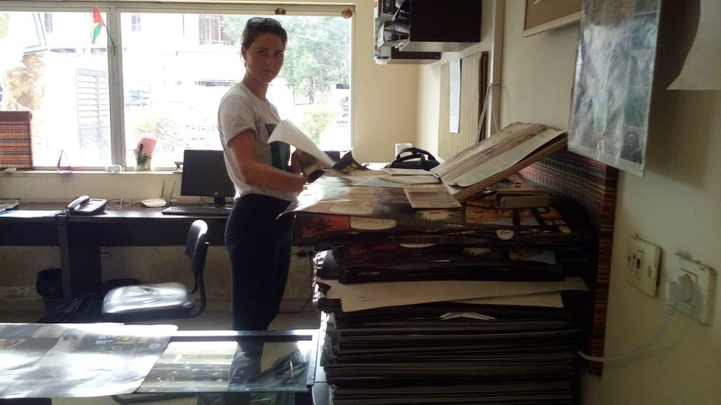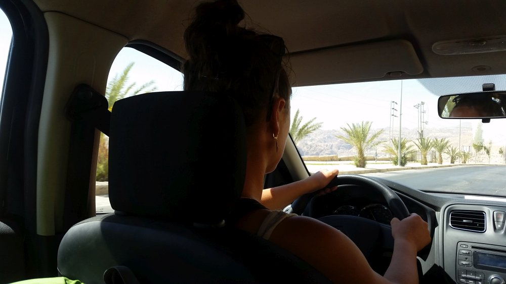 Nach gefühlt endlosem Herumfragen und zahlreichen Fehlinformationen, saßen wir dann letztlich in einem uralt erscheinendem Bus, mit ungepolsterten Sitzen und abgewetzten, gelben Gardinen vor den schmuddelig, schmutzigen Fenstern. Die Farbwahl im Inneren des Busses war wirklich bemerkenswert hässlich. Nachdem sich der Bus langsam gefüllt hatte, stieg zu guter Letzt der Fahrer ein. Er schob eine Kassette ins uralte Kassettenfach, drehte gekonnt den Schlüssel herum und der schrottreif wirkende Bus begann im Takt des Motors zu zittern. Die Blicke der Palästinenser fühlten wir auf uns gerichtet. Offenbar war es eine eher ungewöhnliche Szenerie, zwei junge Touristinnen in ihren lokalen Verkehrsmitteln vorzufinden.