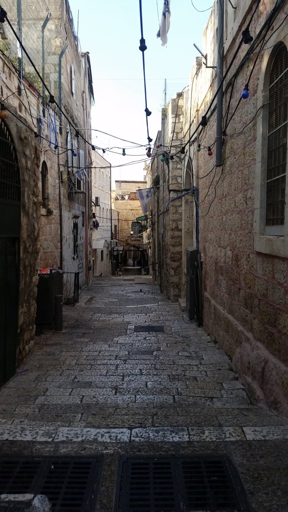 Inzwischen standen wir auf einer nahezu leeren Straße, etwas abseits von einem einsamen, kleinen jüdischen Geschäft. Ghassan steckte mir unauffällig ein paar Silbermünzen zu und bat mich, eine kleine Wasserflasche für ihn zu kaufen. Gläubigen Muslimen war es während Ramadan tagsüber nicht gestattet zu essen oder zu trinken. Unser Begleiter hielt zwar nichts von diesen strengen Vorschriften, war sich jedoch bewusst, dass es ein absolutes No-Go für ihn wäre, hätte er versucht im arabischen Stadtteil etwas Wasser zu kaufen, geschweige denn dieses auf offener Straße zu konsumieren.