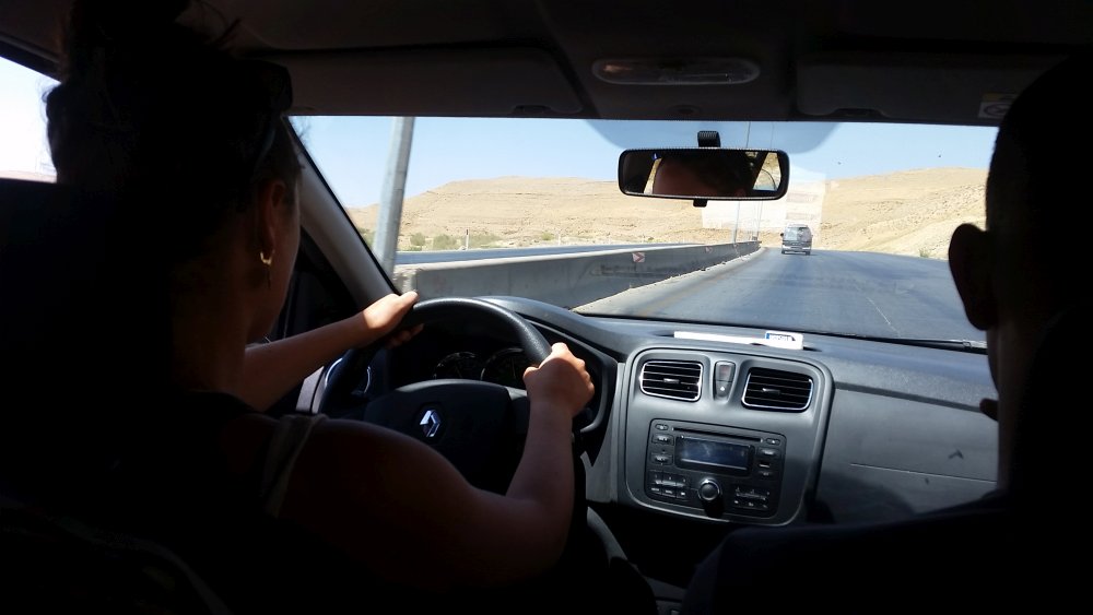 Als wir die Gruppe schon hinter uns gelassen hatten, fuhr ein junger Fahrer mit dunklem Teint, gegelten Haaren, Sonnenbrille und 3 -Tage- Bart in seinem gelben Taxi zu uns herüber. Ich nannte ihm das Ziel mehrfach sehr deutlich und er versicherte uns, uns für 40 Schekel dort hinzufahren. Wir stiegen ein. Ich auf den Beifahrersitz neben dem Fahrer, todsicher, dass dies erst der Beginn der Verhandlung gewesen war, und Lea auf der Rückbank. Ich wiederholte unser Ziel mehrfach, ungläubig über das Angebot und ein Ausbleiben der bisherigen Verhandlungen.