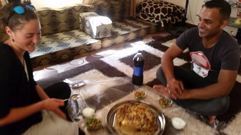 Durch einladende Gesten gab der Mann zu verstehen, dass wir uns setzten sollten, und kurz darauf kam seine in Kopftuch und lange Kleidung gehüllte Frau aus dem Haus und brachte uns schwarzen Tee mit Minze und ganz viel Zucker – typisch arabisch. Wir ließen uns das süße Getränk schmecken und freuten uns sehr über die plötzliche und unerwartete Gastfreundschaft. Gerne wären wir auch noch geblieben, aber je länger wir auf der Treppe saßen, desto mulmiger wurde uns bei dem Gedanken an die noch bevorstehende Rückfahrt.