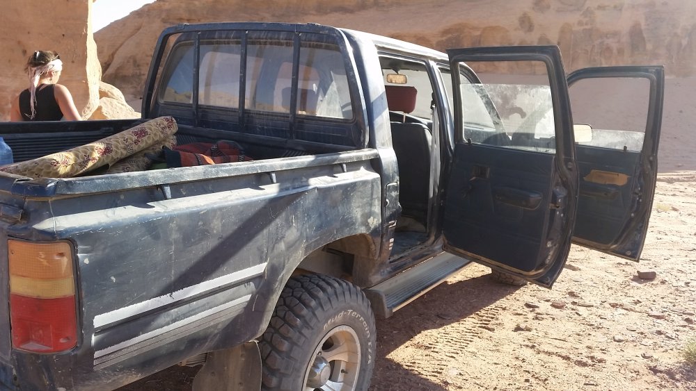 Etwas verwundert raunte der Polizist etwas seinem Kollegen zu, der schon ungeduldig mit den großen Händen aufs Lenkrad trommelte und rief dann noch Ghassan etwas auf Arabisch herüber. Die beiden lachten kurz auf und dann waren die beiden Polizisten auch schon wieder verschwunden. Ich schaute ihnen hinterher, doch alles was ich sah war eine dunkle Staubwolke.