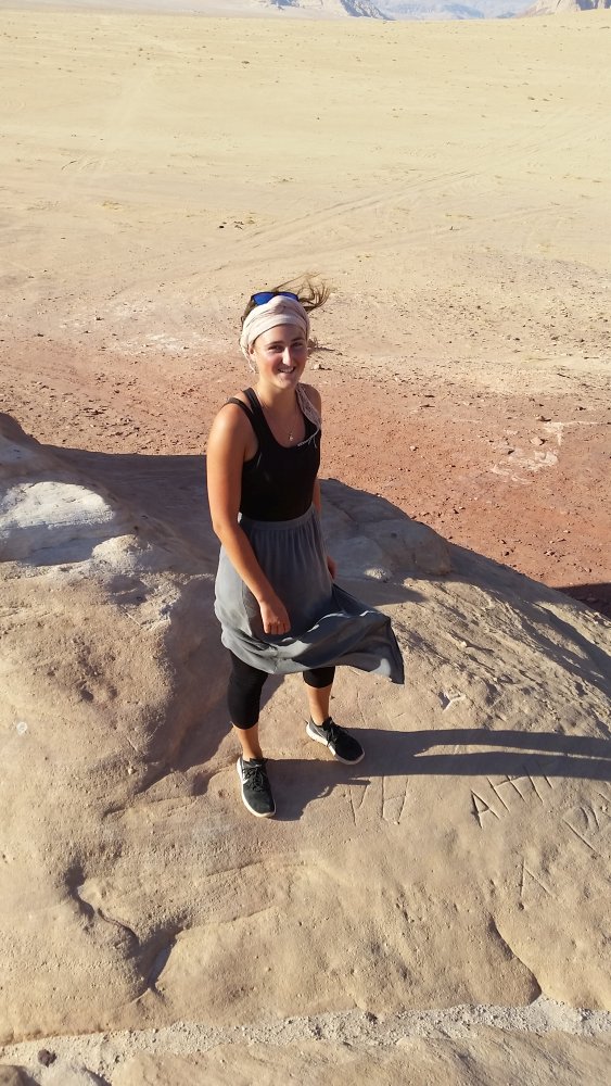 Es war für Lea und mich ein mehr als bedrückendes Gefühl vor der einschüchternden Mauer zu stehen, mit dem Wissen, dass die meisten Bewohner der Stadt wohl niemals eine Erlaubnis bekommen würden, ihr kleines, eingemauertes Wohngebiet zu verlassen. Wir gingen ein Stück an der Mauer entlang. An ihren Rändern türmten sich Stacheldraht, Müll, Schutt und sonstiger Unrat. Es war beklemmend. Überall waren Schriftzüge wie „Free Palestine!“ , aber auch Darstellungen von Nethanjahu und Trump in unübersehbarer Größe anzutreffen.